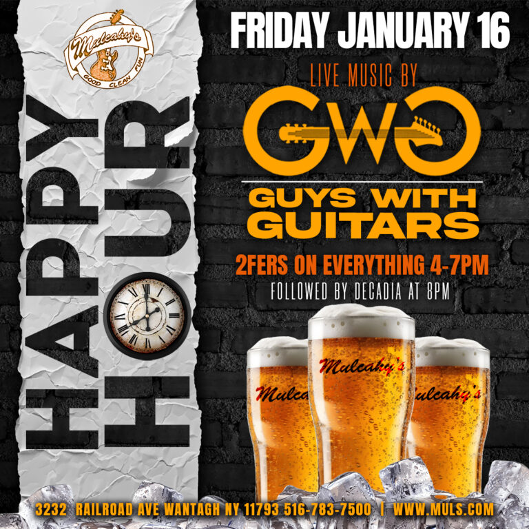 Two for 1 drinks on everything from 4-7pm! Live music with Guys with Guitars! No Cover till 7pm. Live music followed by Decadia at 8pm