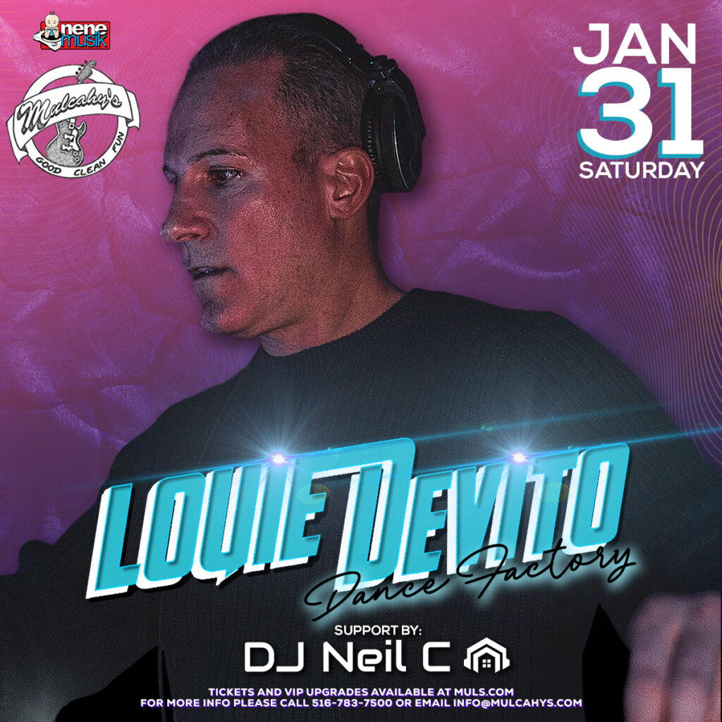 Louie Devito LIVE at Mulcahy's! Doors at 8pm Opening set by DJ Neil C at 8pm $50 per pers person for VIP Sections via Muls.com. For questions and more info please call us at 516-783-7500
