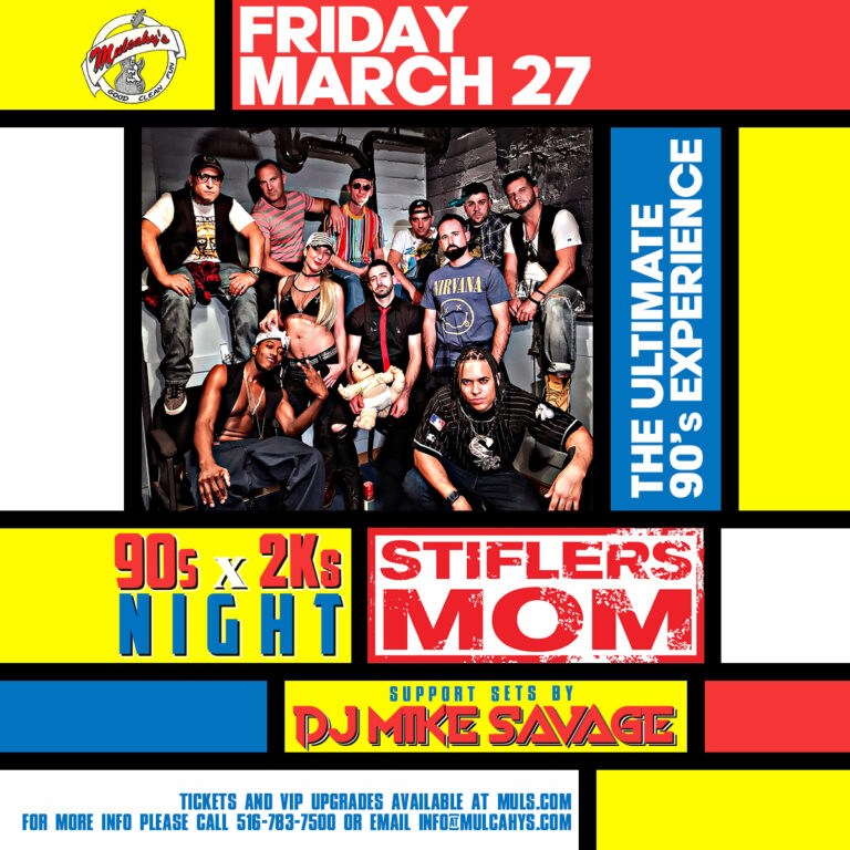90’s vs 2000’s Night Throw it back with Stifler’s Mom & DJ Savage Two decades of great music in One epic night.  Doors at 7pm Show at 7pm For VIP information check out muls.com and for questions email info@mulcahys.com or call 516-783-7500