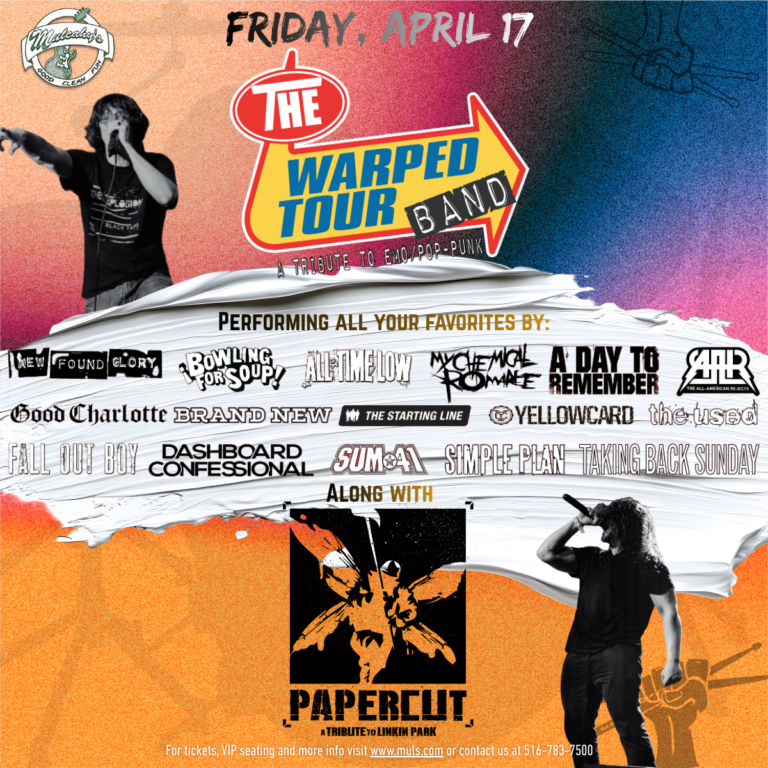 The Warped Tour Band with Papercut (tribute to Linkin Park) performs at Mulcahy's Doors at 7pm Show at 8pm For VIP information check out muls.com and for questions email info@mulcahys.com or call 516-783-7500